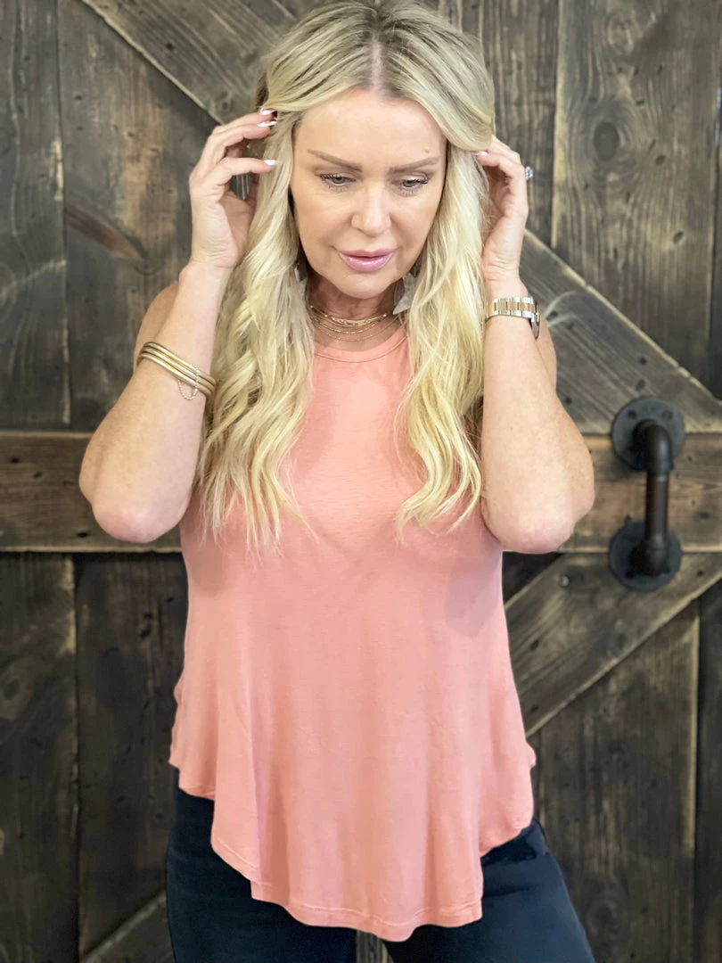 2NE1 Apparel TOPS Solid Loose Fit Tank Top In Peach
