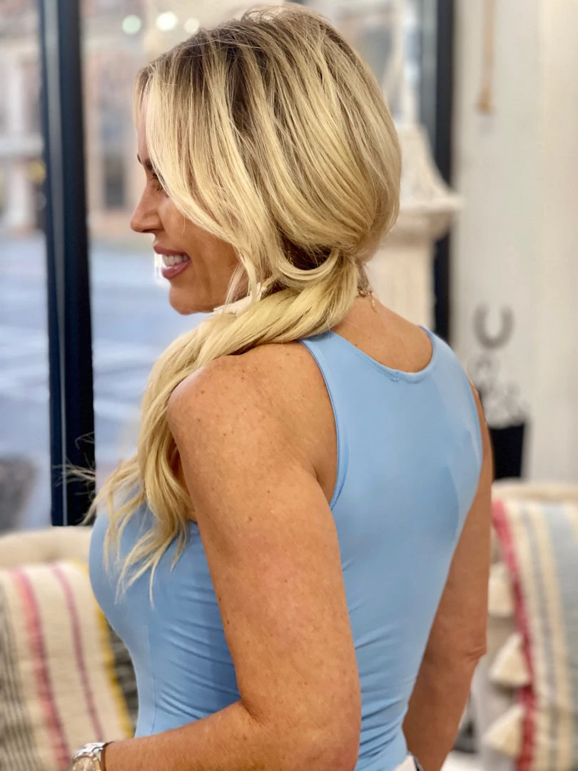 2NE1 Apparel TOPS Solid Sleeveless Bodysuit In Light Blue