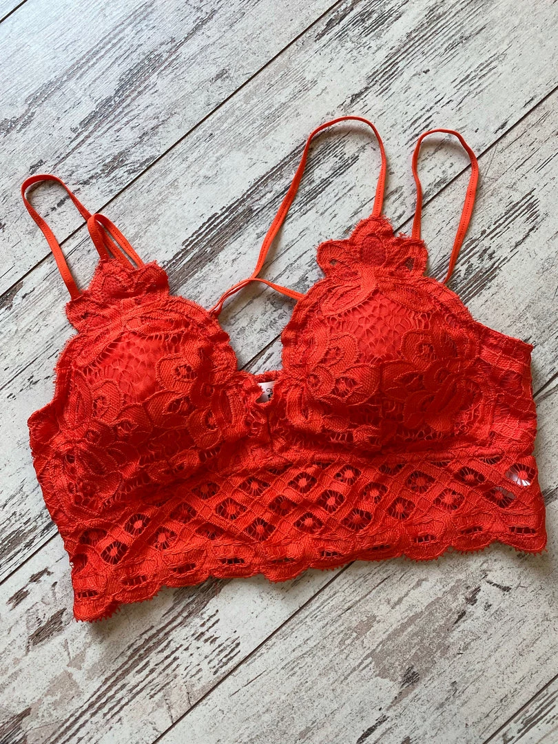 Anemone Scalloped Lace Bralette – Burnt Red TOPS