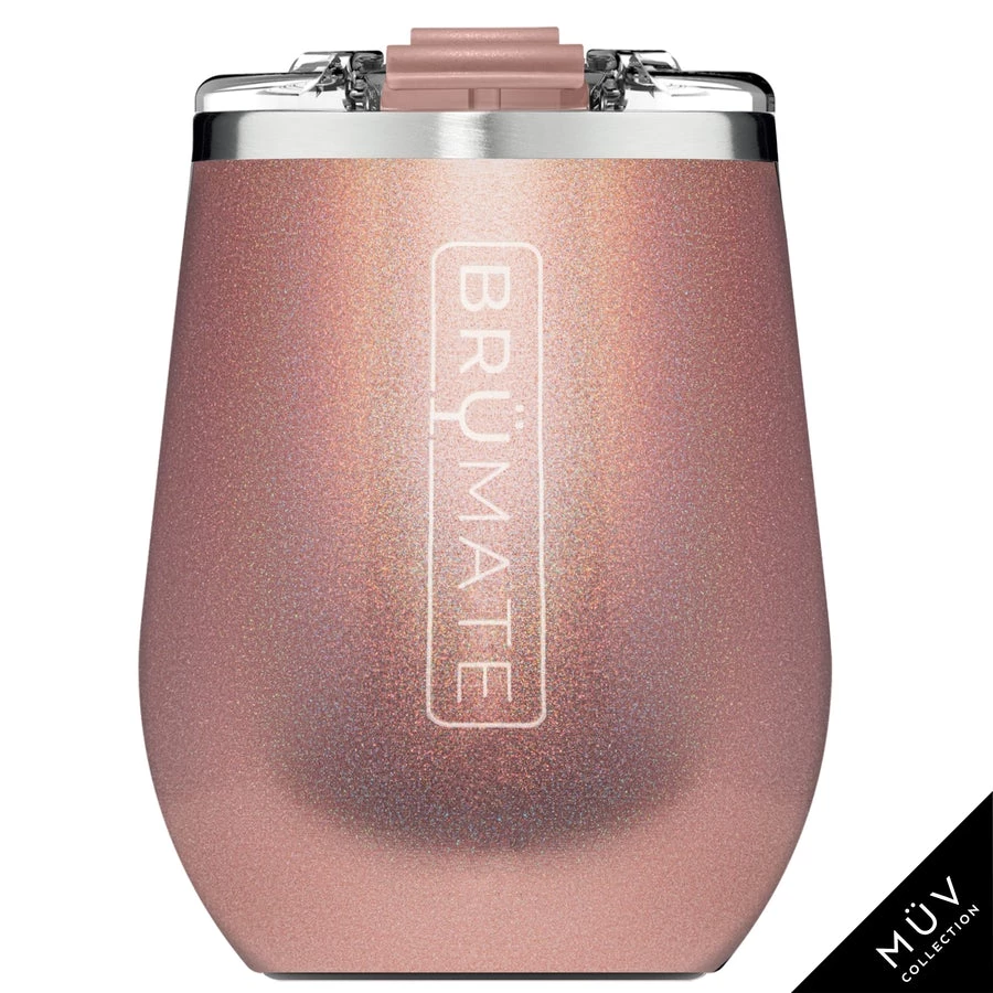 BruMate Uncork’d XL Muv Wine Tumbler – Glitter Rose Gold
