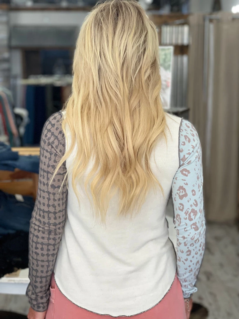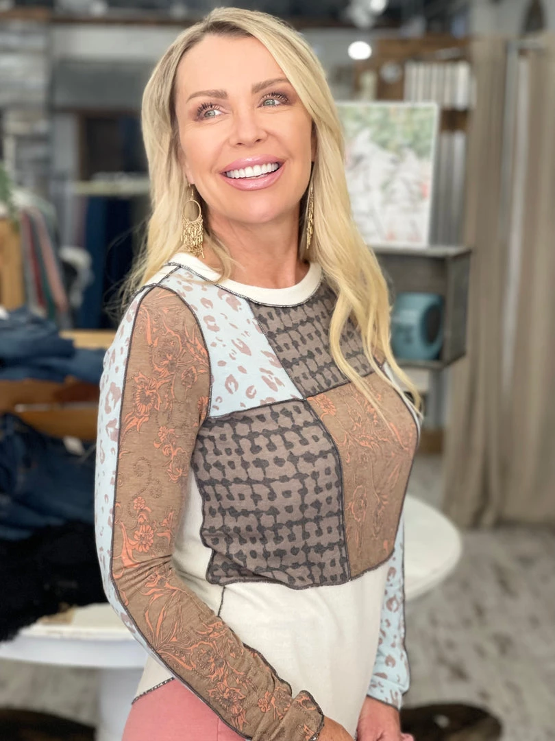 Be the first to review “Bucket List TOPS Patchwork Rounded Hem Top” Cancel reply