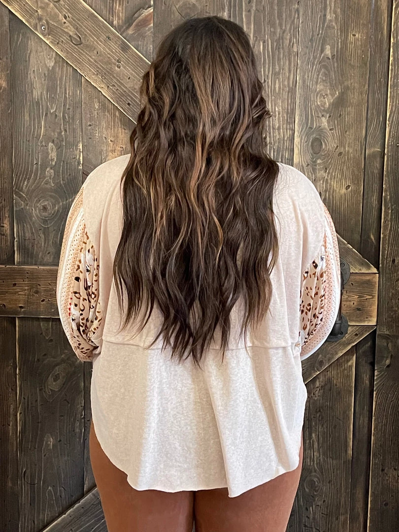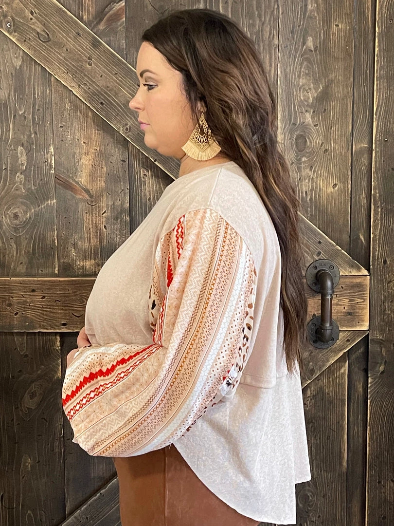 Easel Mixed Print Bubble Sleeve Tunic Top