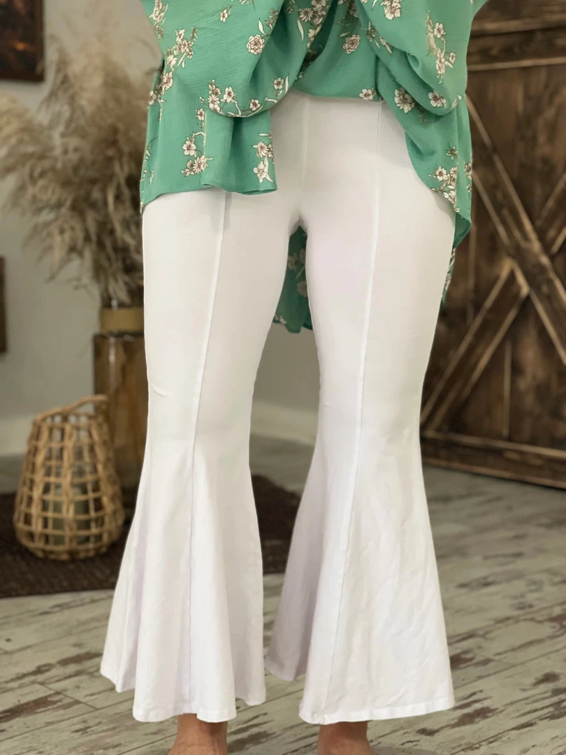 Fashiongo: Chatoyant BOTTOMS Washed Cropped Bell Bottom Pants In White