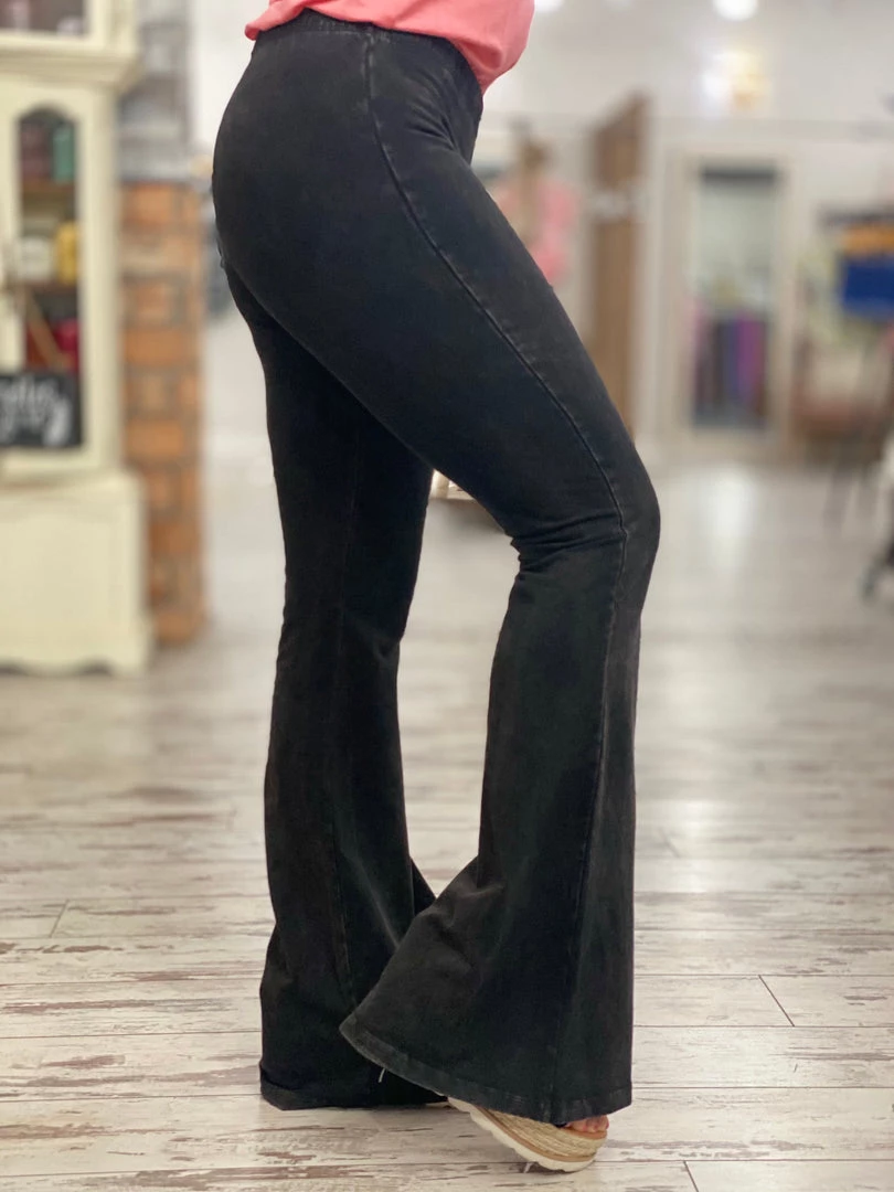 Fashiongo: Chatoyant Washed Bell Bottom Flare Pants In Black BOTTOMS