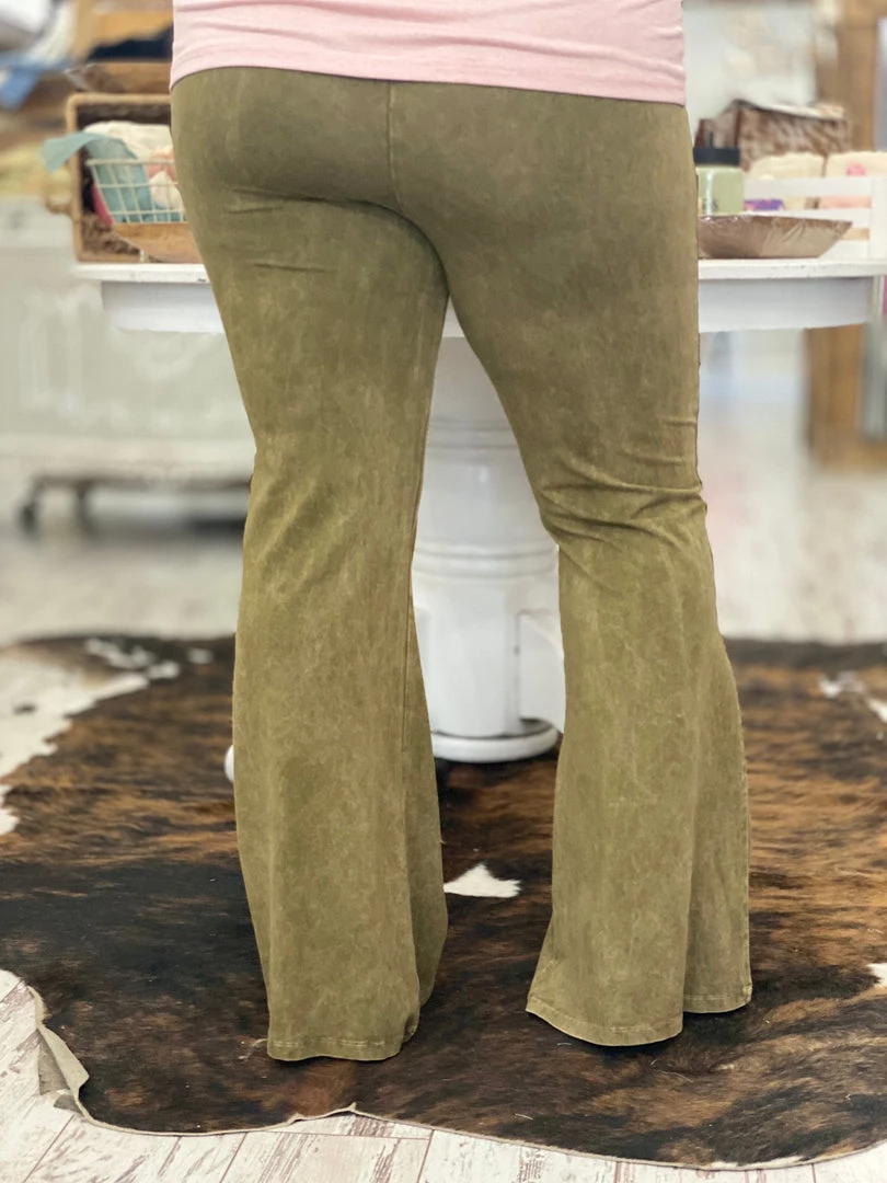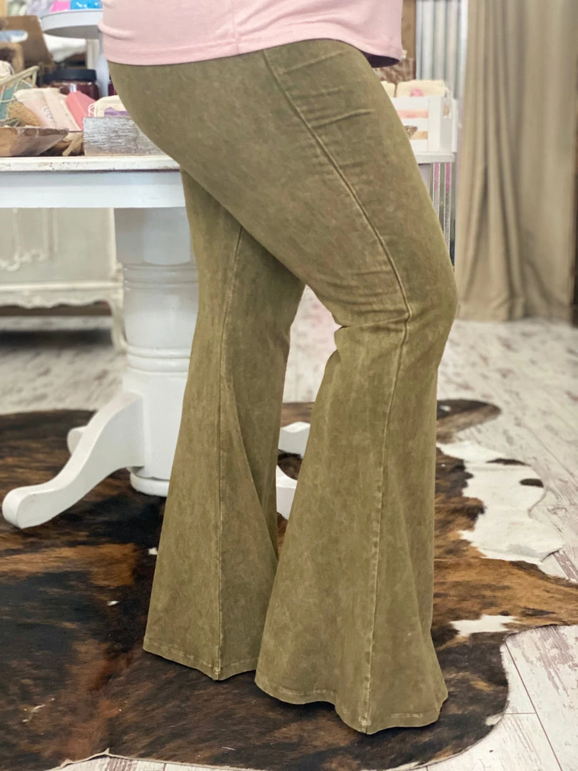 Fashiongo: Chatoyant Washed Bell Bottom Flare Pants In Pale Olive