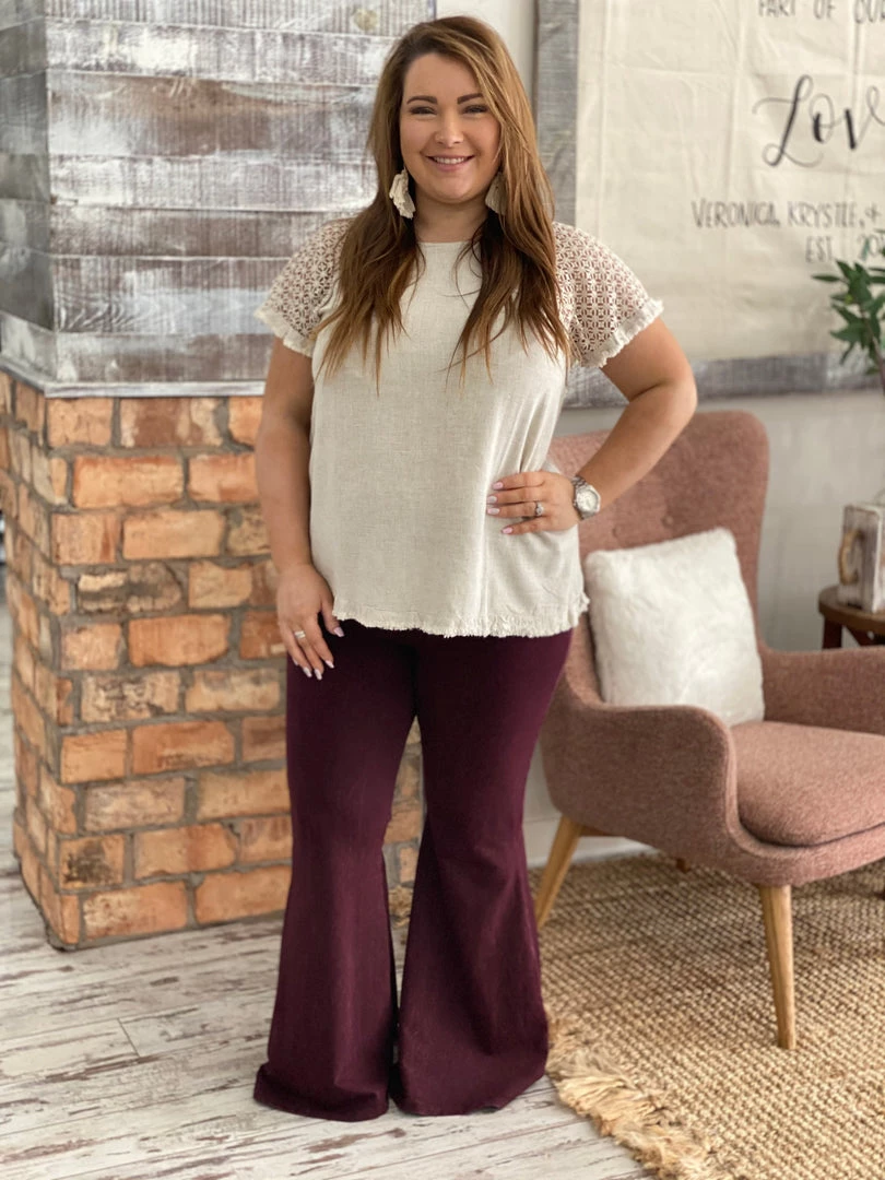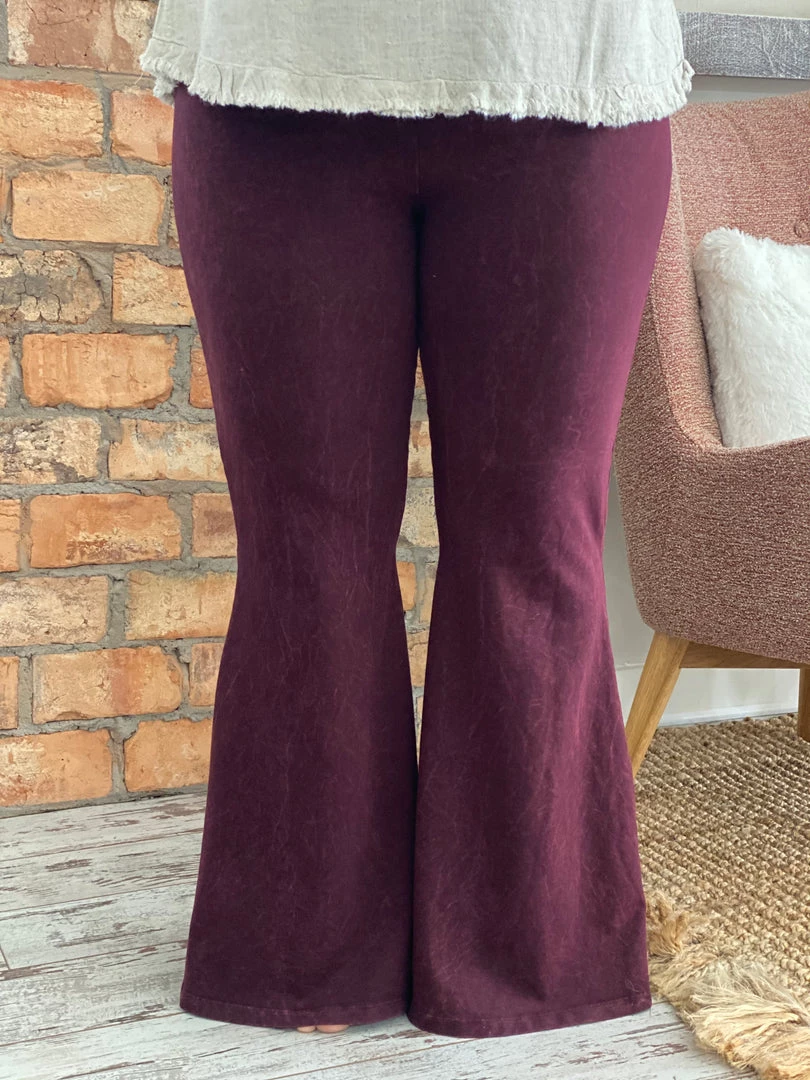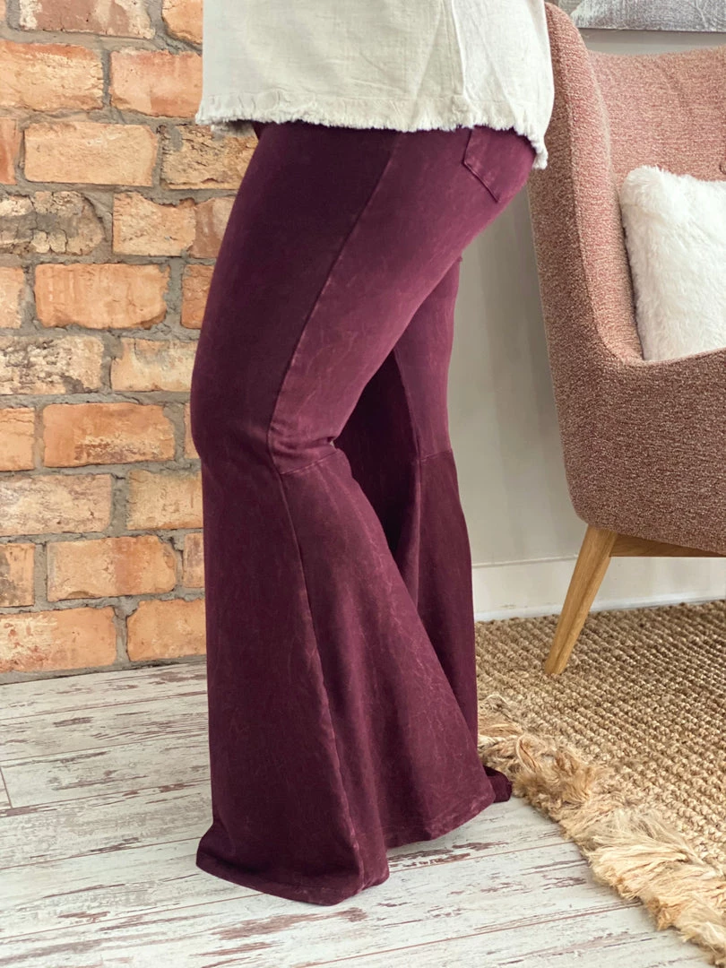 Fashiongo: Chatoyant Washed Bell Bottom Flare Pants In Burgundy