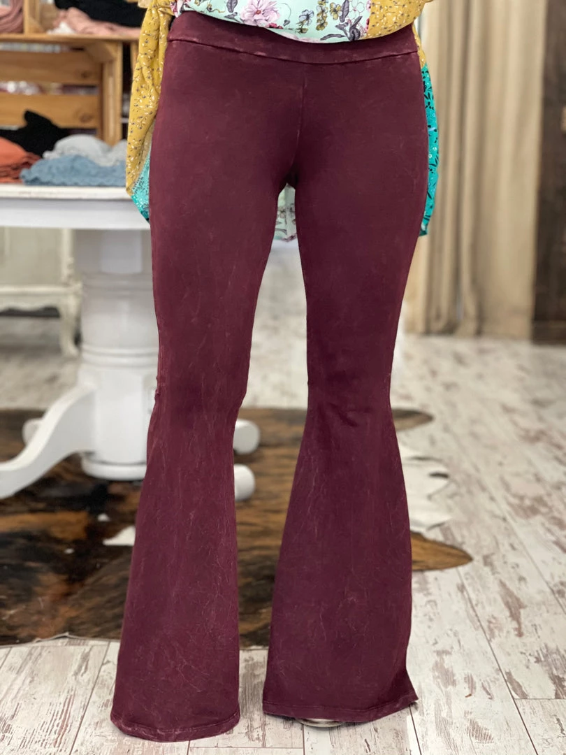 Fashiongo: Chatoyant Washed Waffle Bell Bottom Flare Pants In Burgundy