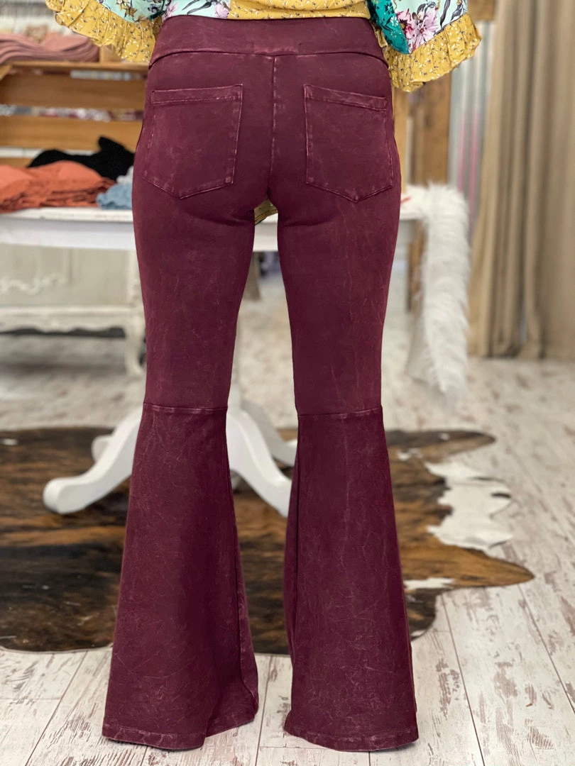 Fashiongo: Chatoyant Washed Bell Bottom Flare Pants With Pockets In Burgundy