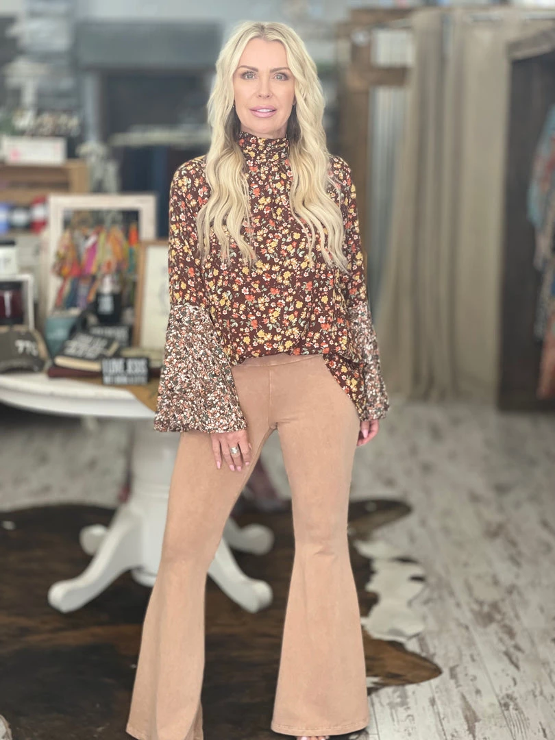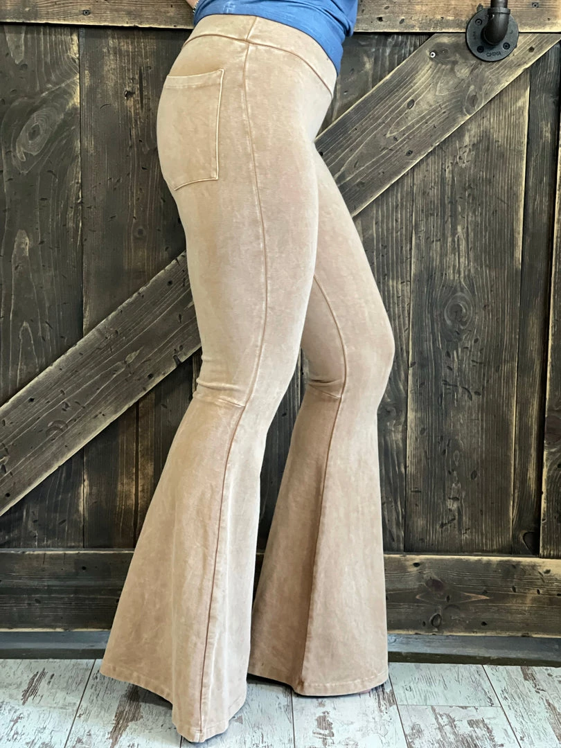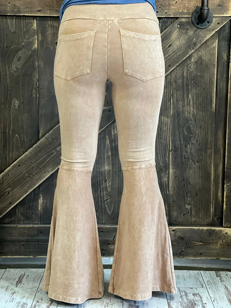 Fashiongo: Chatoyant Washed Bell Bottom Flare Pants With Pockets In Camel