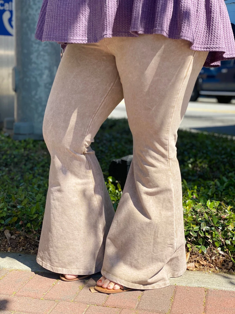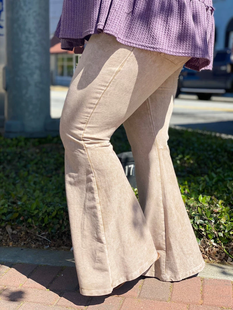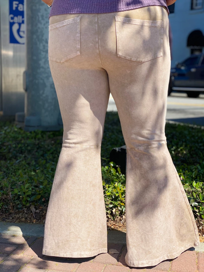 Fashiongo: Chatoyant Washed Bell Bottom Flare Pants With Pockets In Desert Taupe