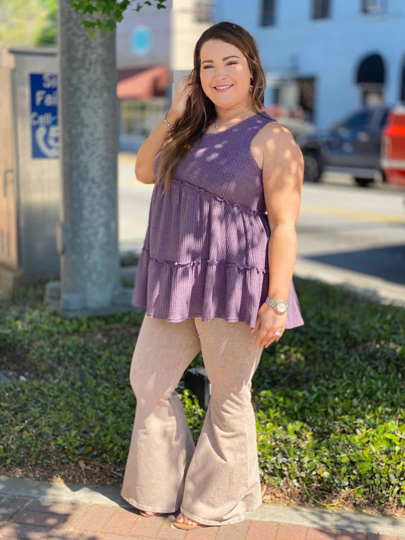 Fashiongo: Chatoyant Washed Waffle Bell Bottom Flare Pants In Burgundy
