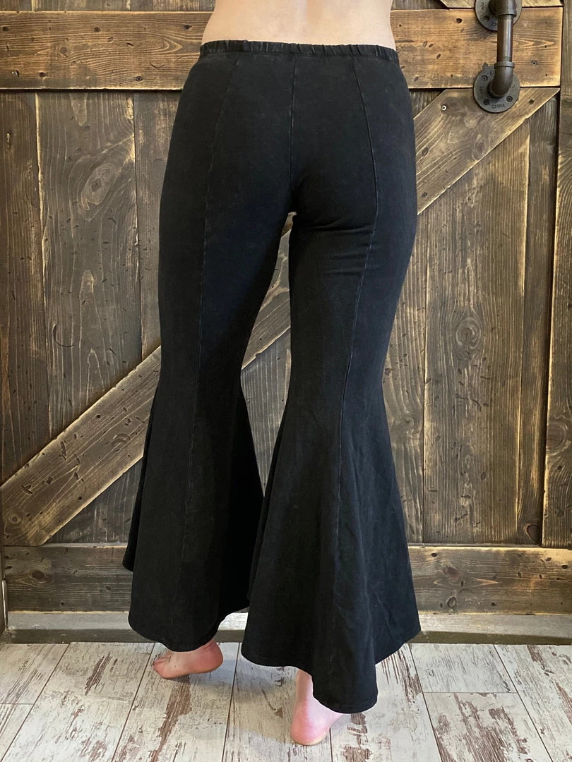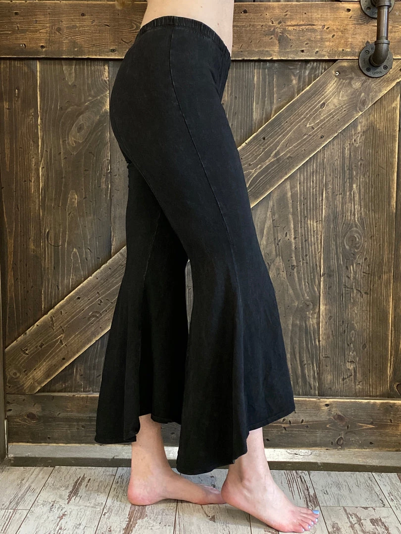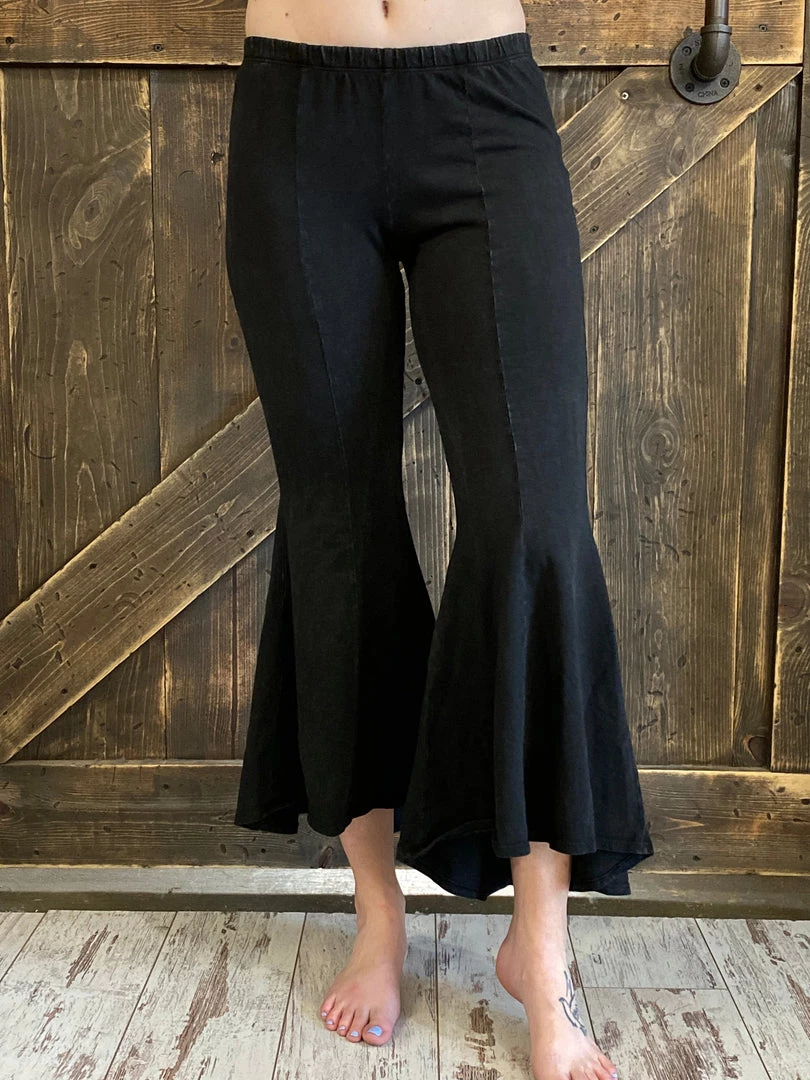 Fashiongo: Chatoyant Washed High Low Cropped Bell Bottom Pants In Black BOTTOMS