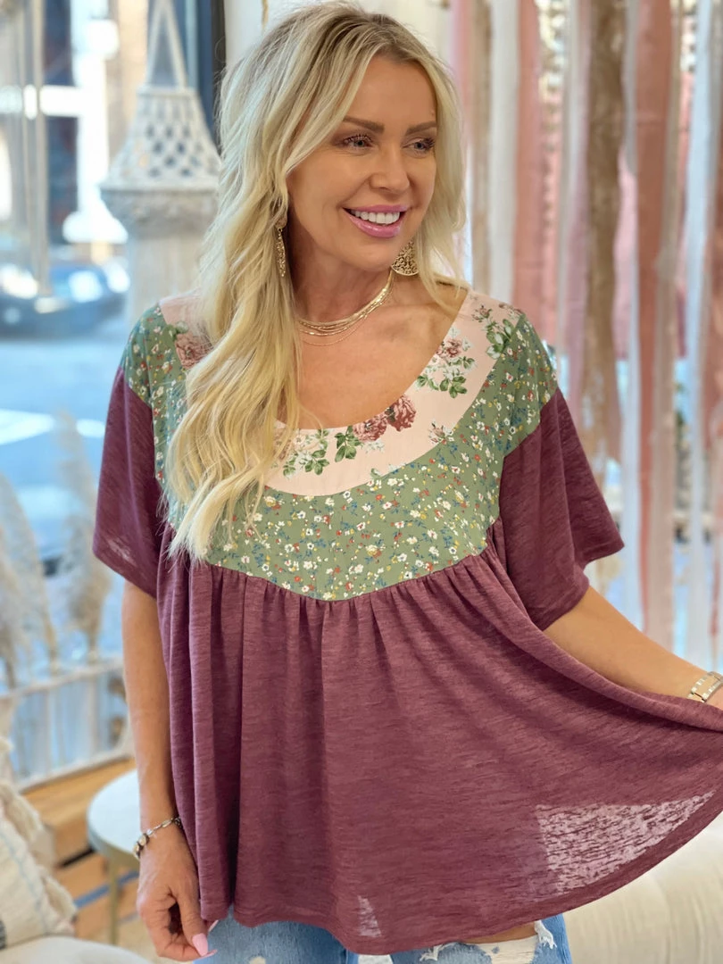 Flying Tomato Floral Color Block Loose Fit Top