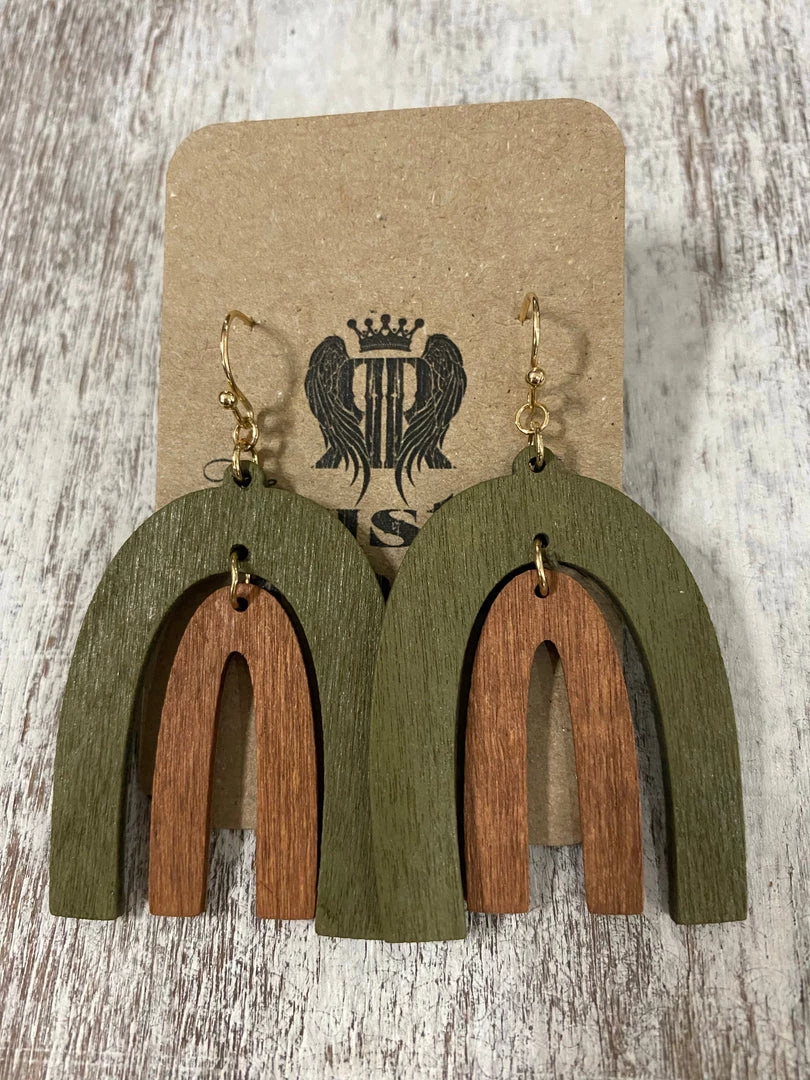 Golden Stella ACCESSORIES Wood Two Tone Arch Earrings In Olive