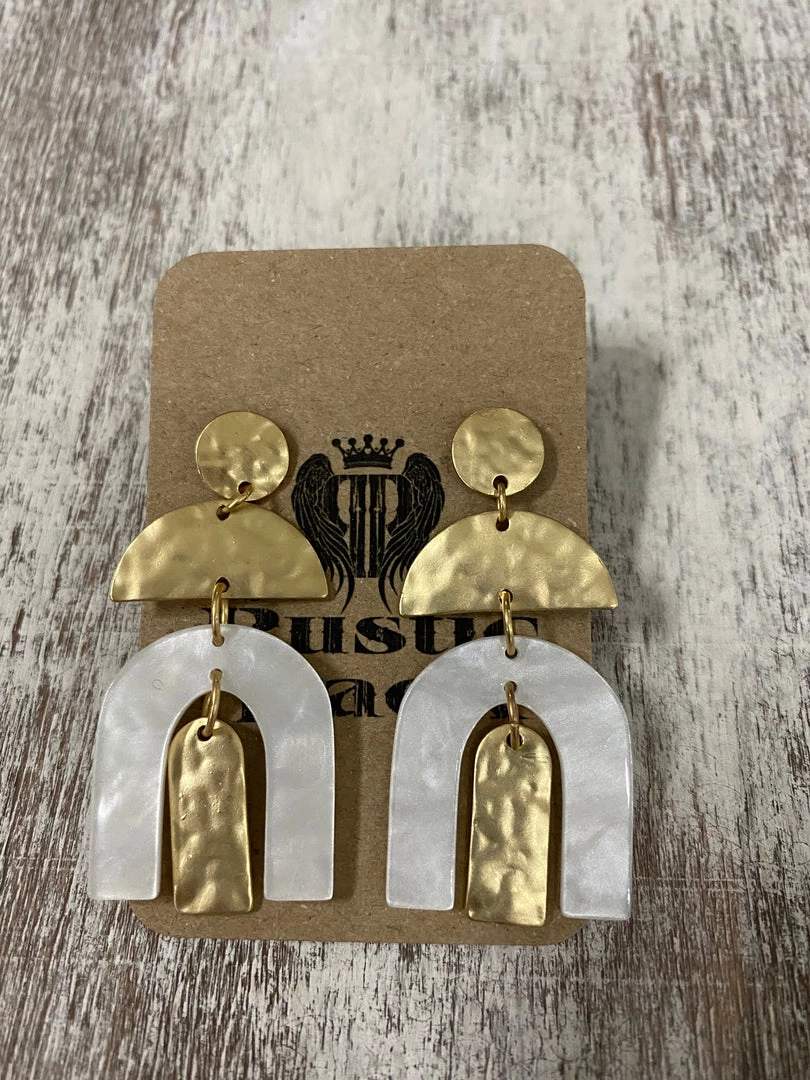 Golden Stella Acrylic Arch & Hammered Metal Earrings In White