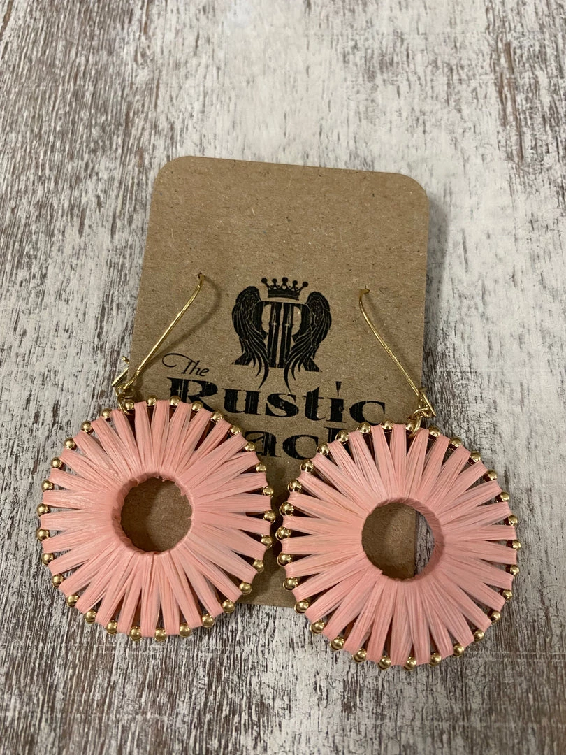 Golden Stella Raffia Wrapped Circle Earrings In Pink