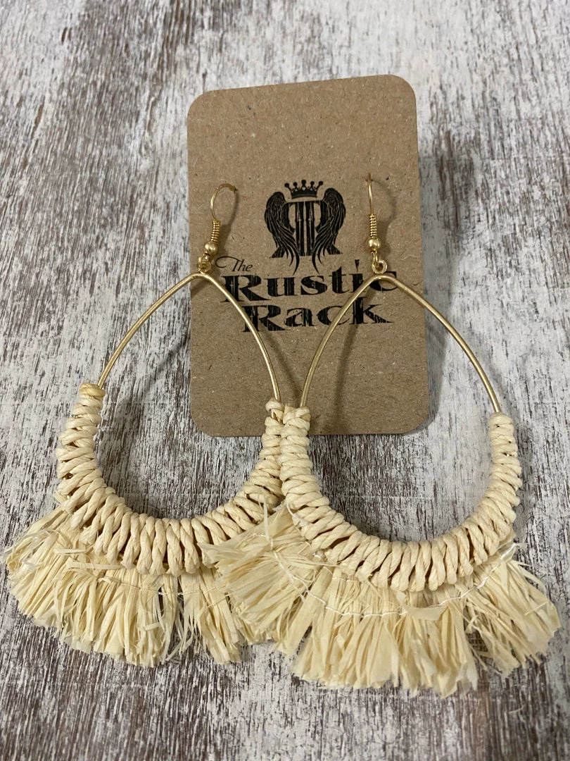 Golden Stella Raffia Wrapped Teardrop Earrings In Ivory