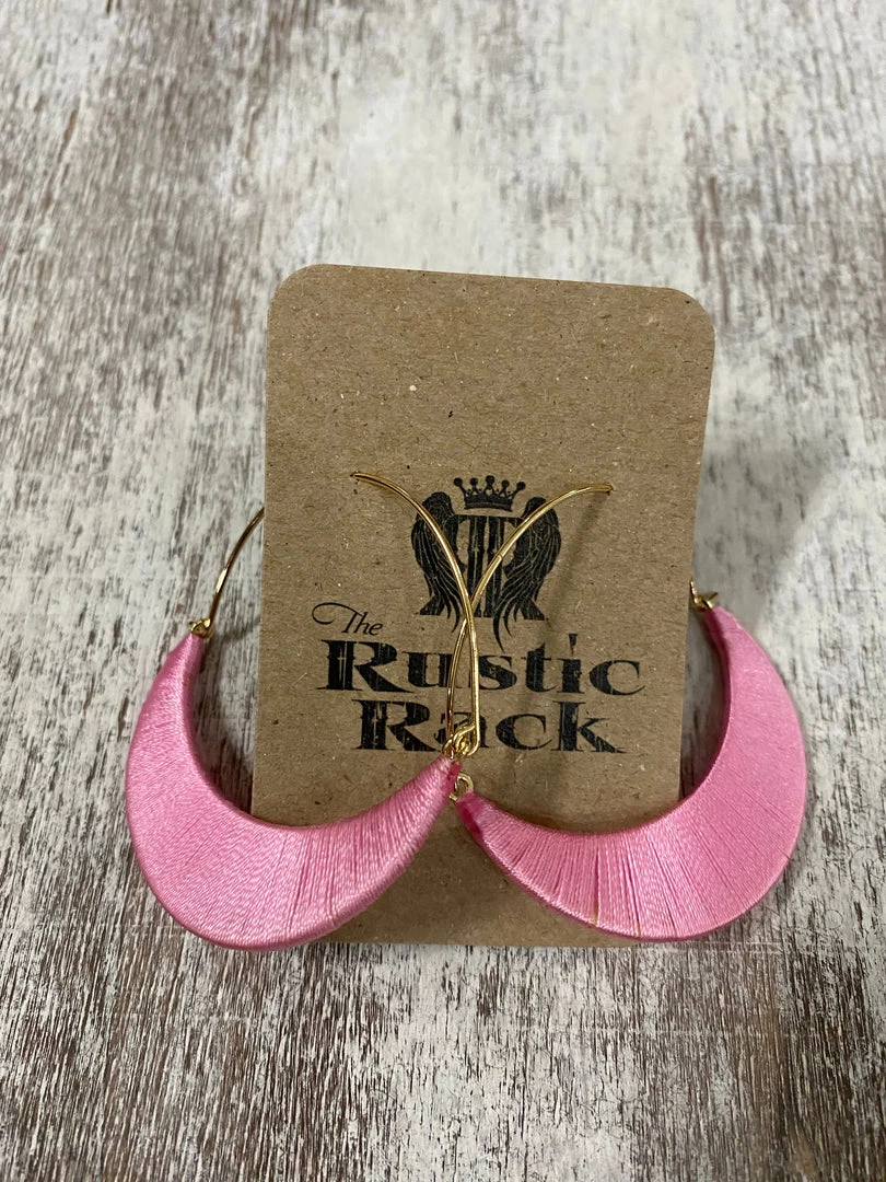 Golden Stella Thread Wrapped Hoop Earrings In Pink ACCESSORIES