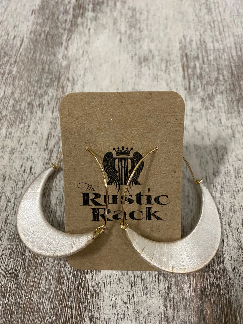 Golden Stella Thread Wrapped Hoop Earrings In White