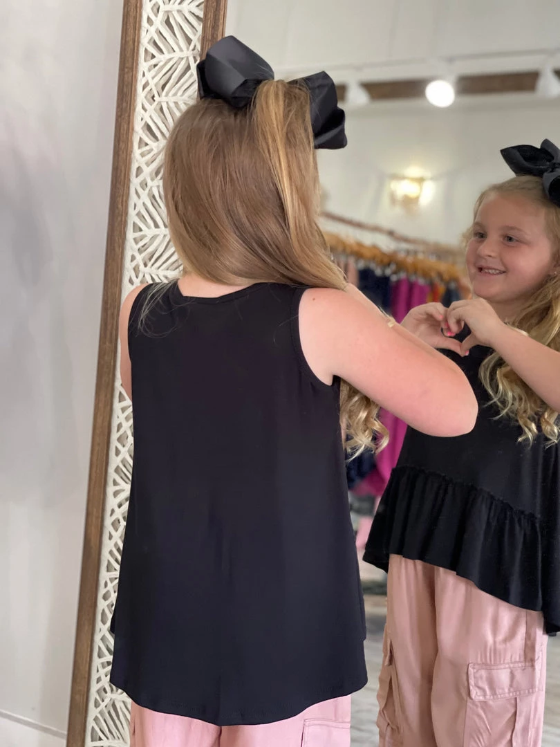 Be the first to review “Gtog Ruffle Hem Tank Top In Black” Cancel reply
