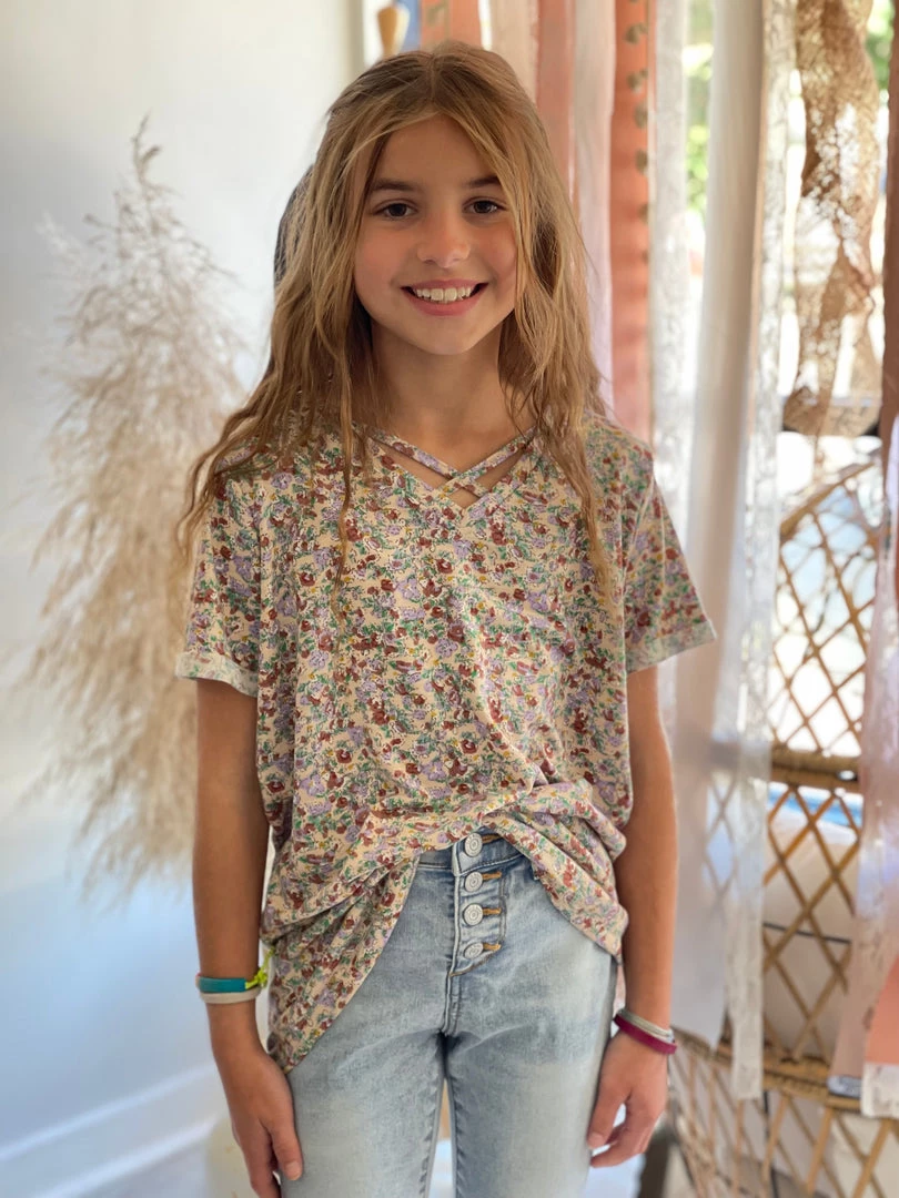 Hayden Of Los Angeles Floral Criss Cross Neck Top GIRLS