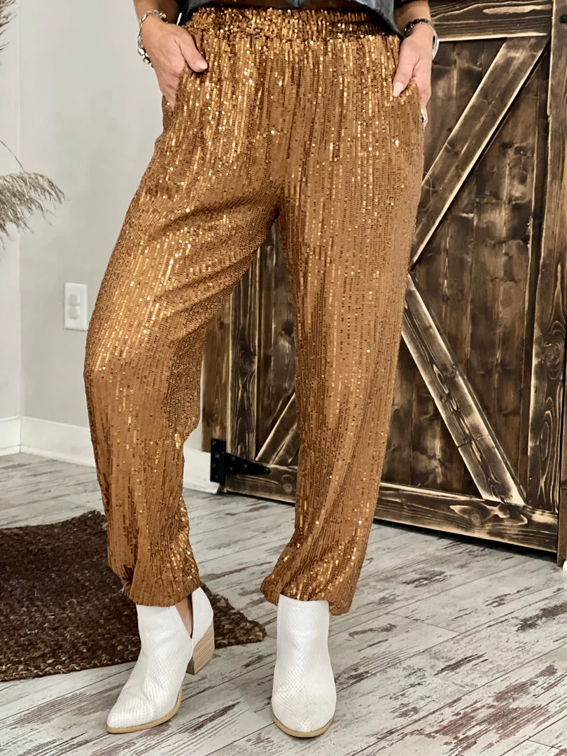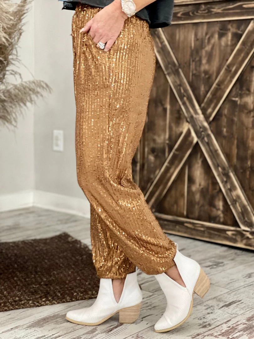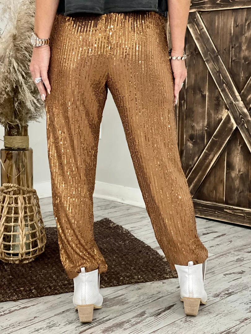 Kori America BOTTOMS Sequin Jogger Pants In Brown