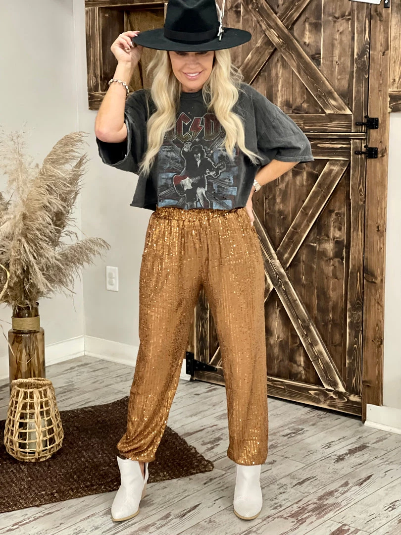 Be the first to review “Kori America BOTTOMS Sequin Jogger Pants In Brown” Cancel reply