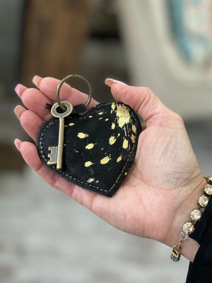 Myra Bag Hairon Heart Key Fob In Black & Gold BAGS + BACKPACKS