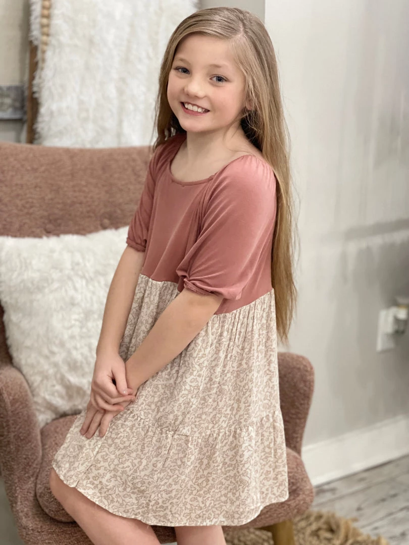 Oddi GIRLS Floral Color Block Dress