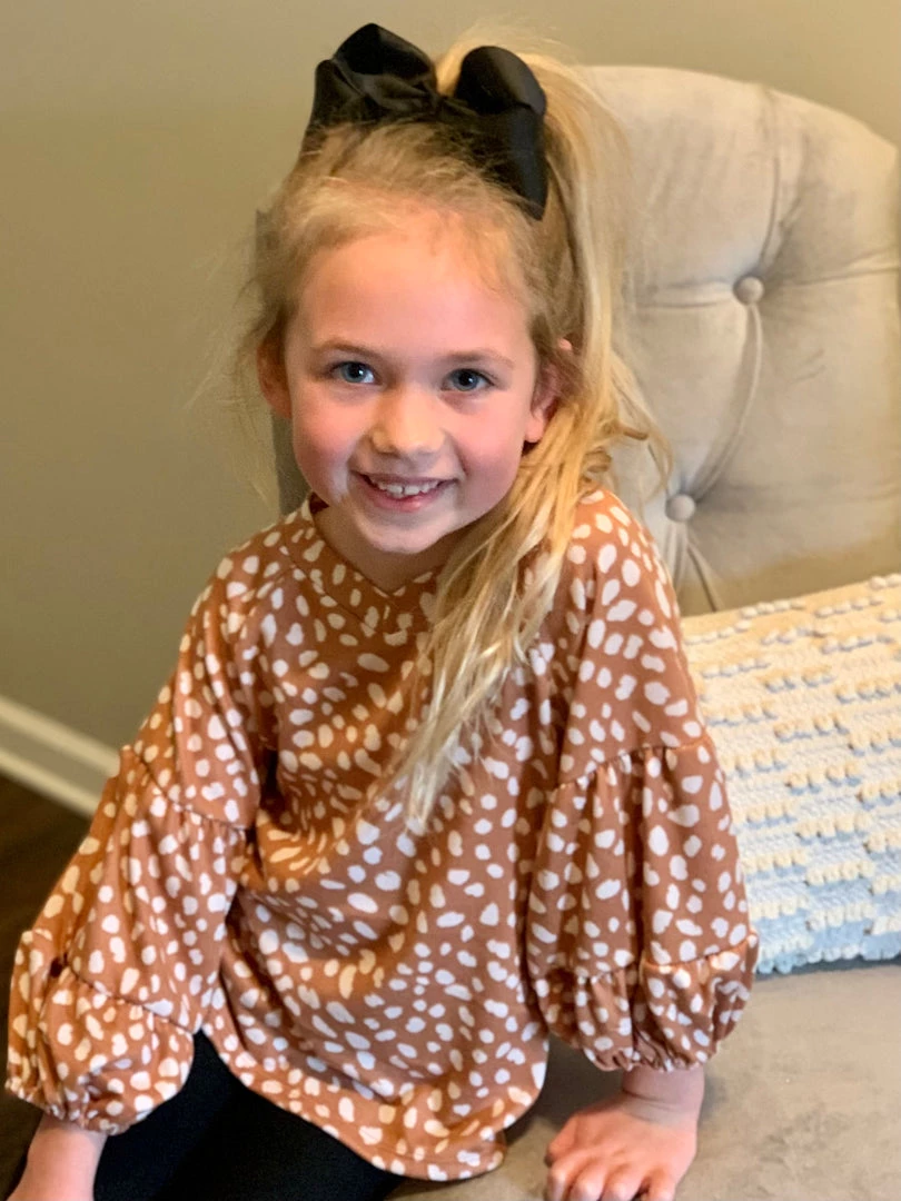 Oddi Spotted Brushed Knit Top With Balloon Sleeves