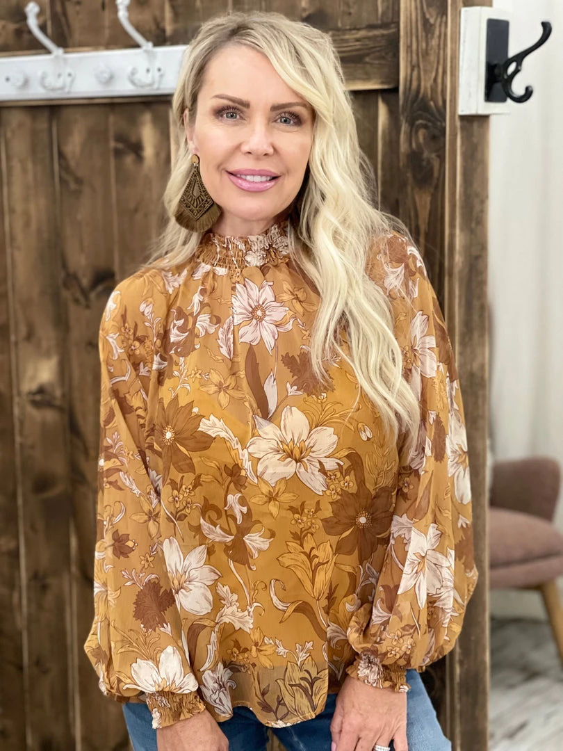The Rustic Rack Boutique Smocked Neck Floral Top