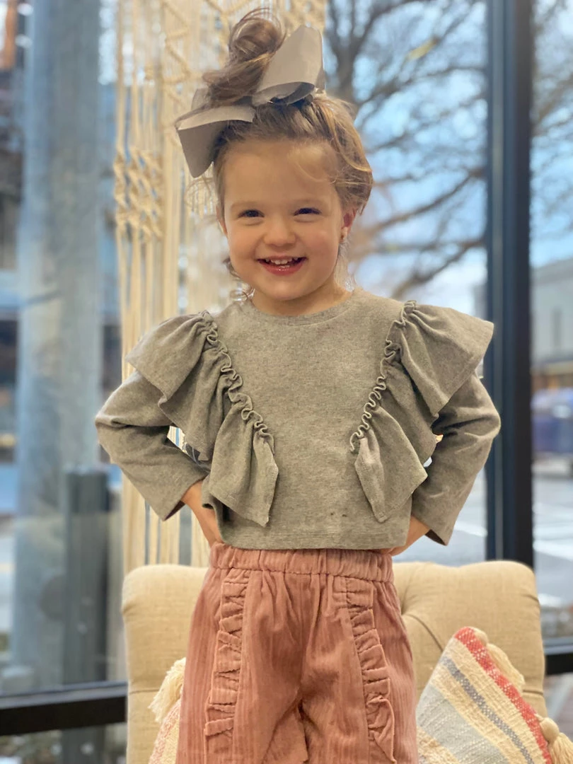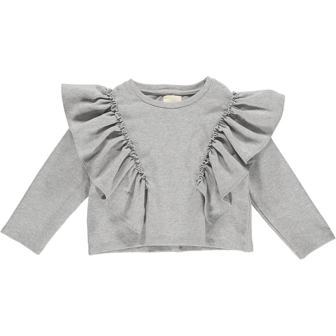 Vignette GIRLS Long Sleeve Ruffle Top In Grey