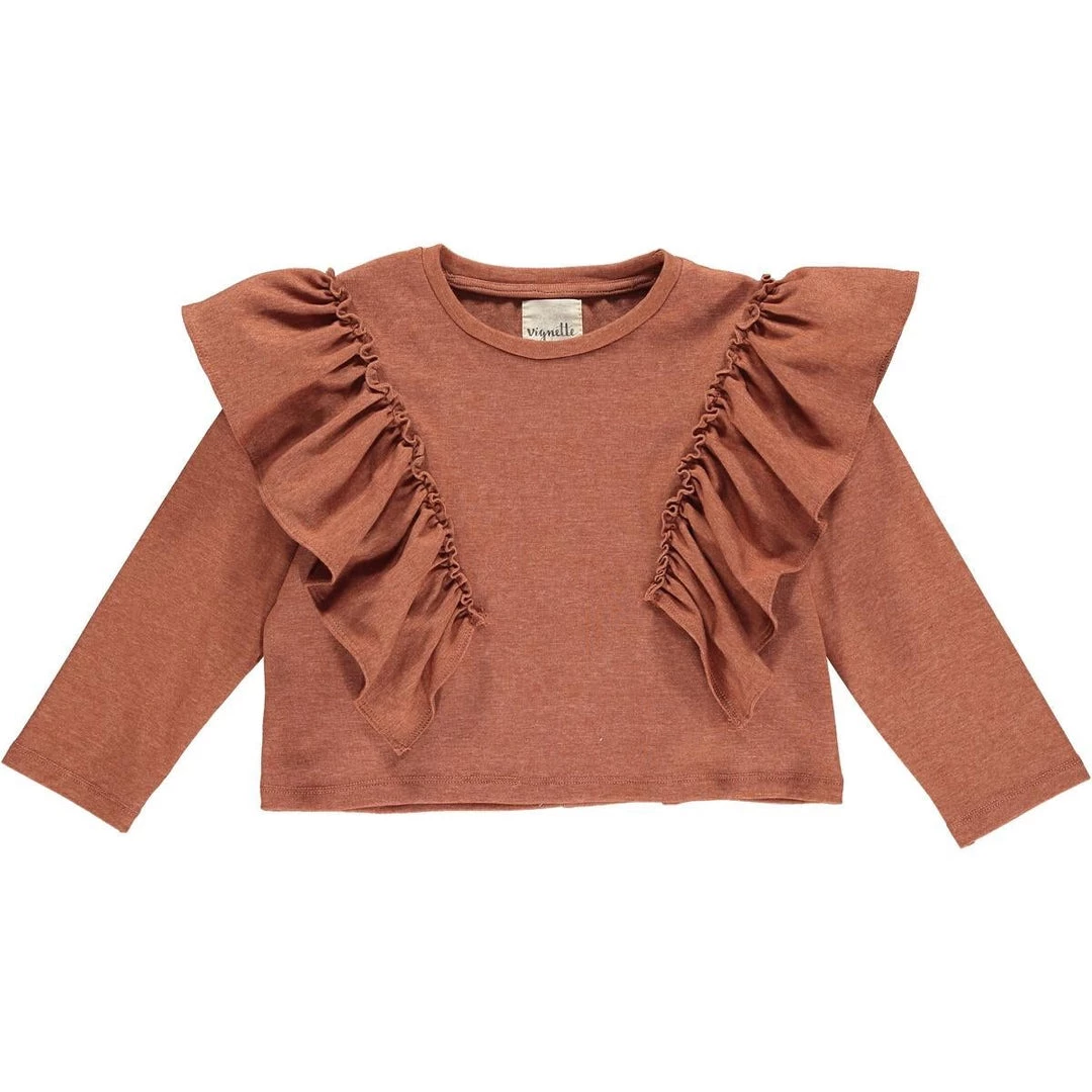 Vignette Long Sleeve Ruffle Top In Rust GIRLS