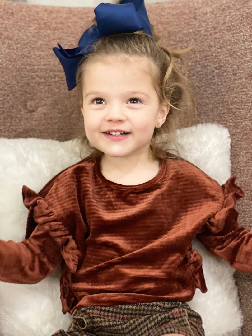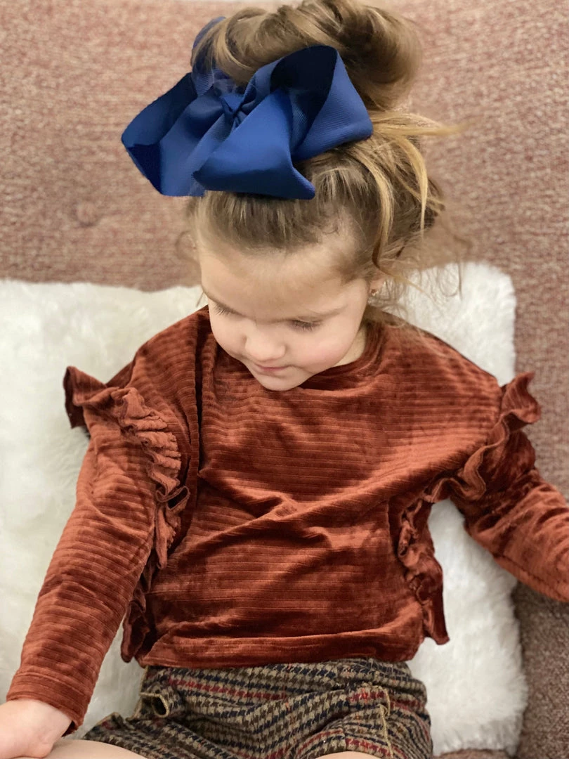 Vignette Ruffle Velvet Top In Rust GIRLS