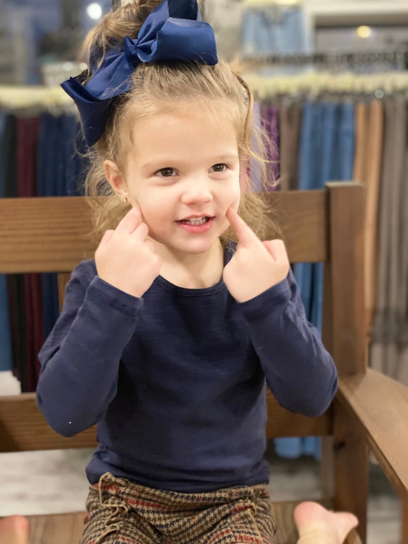 Vignette Solid Heathered Long Sleeve Top In Navy GIRLS